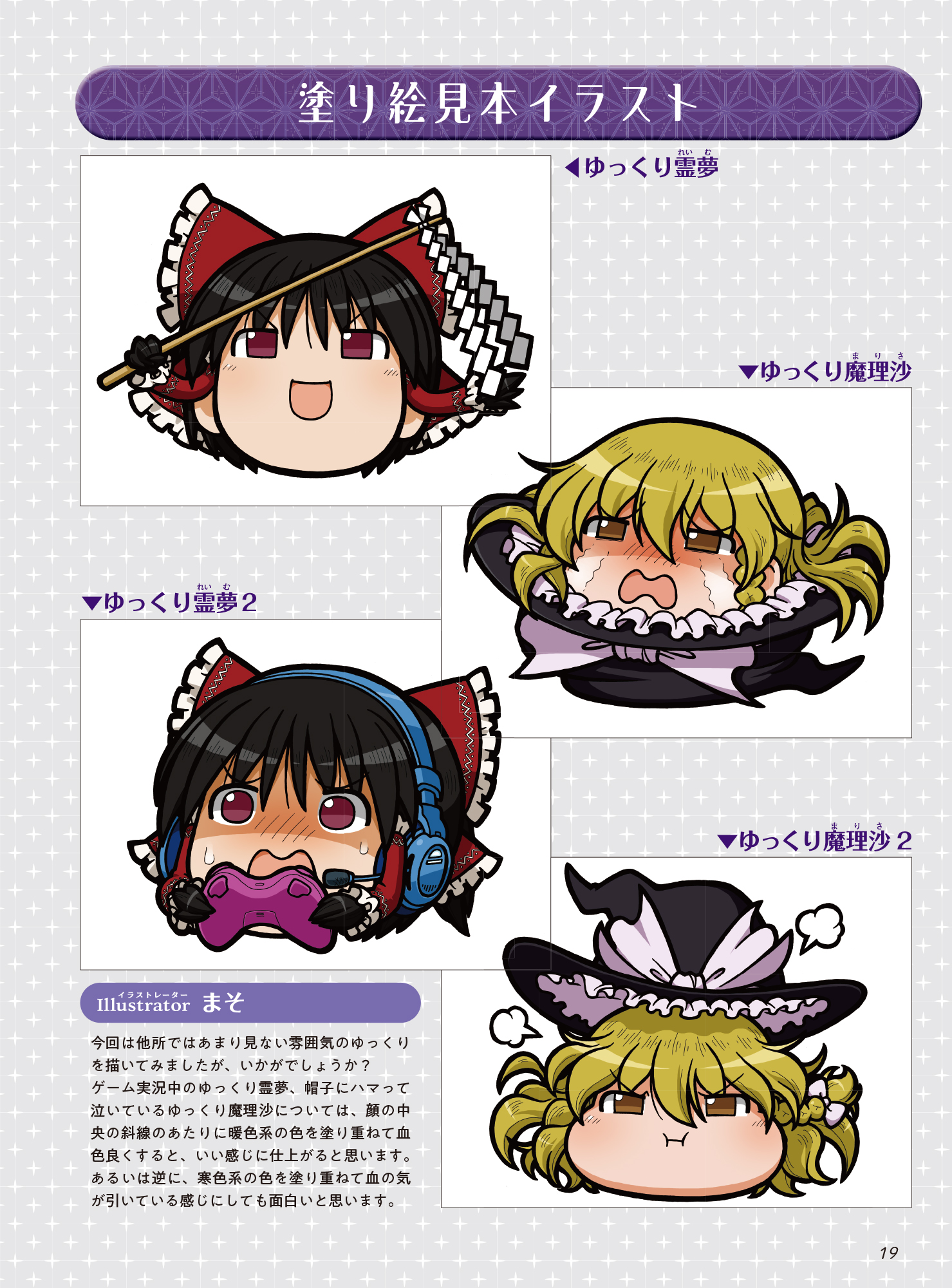 東方イラストで著名な「粗茶」、「ゆっくり霊夢」、「ゆっくり魔理沙」で有名な「まそ」など20名以上の東方絵師が参加。