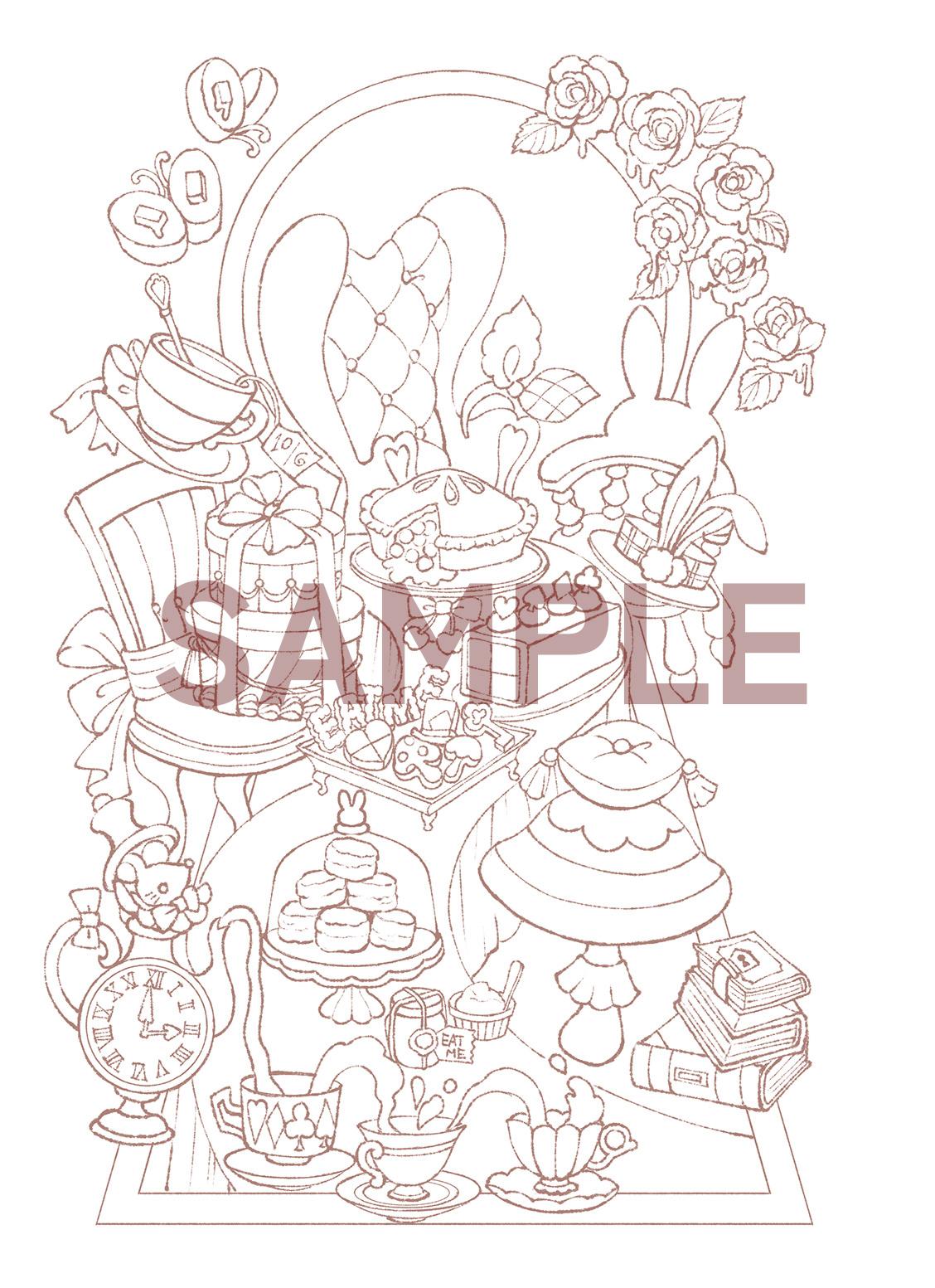 お茶会に欠かせないティーカップ、ケーキやドーナツなどのスイーツ、そして夢のようなお菓子の家……。