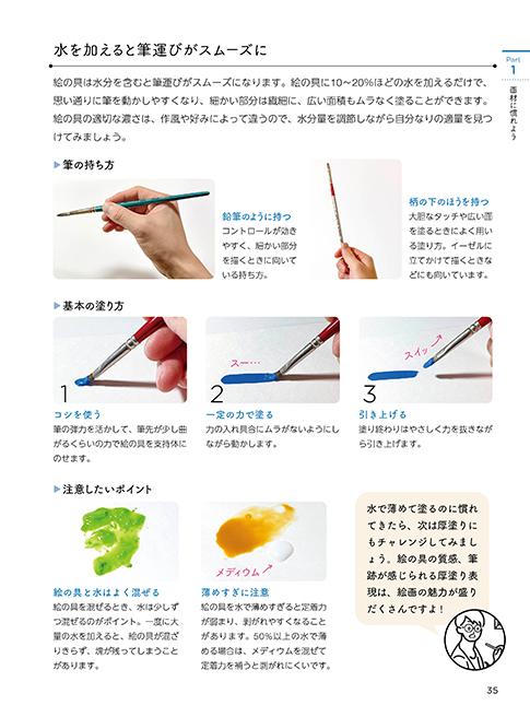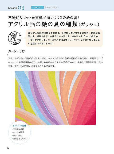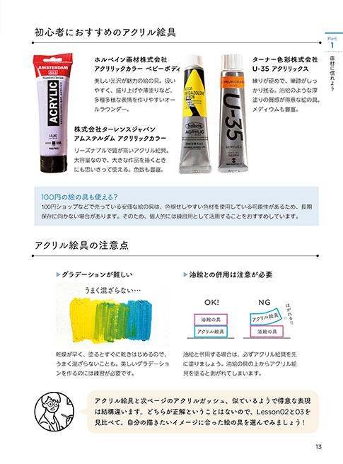アクリル画初心者の方にも、いま現在アクリル絵の具を使って制作をしているという方にも、また最近アナログ画材に注目している……というイラストレーターの方々にも、自信をもってオススメできる一冊です。