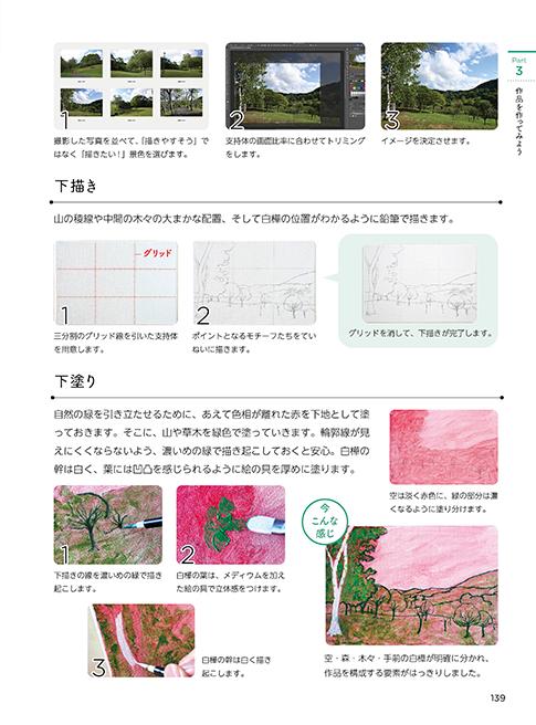 そんな皆さんのために、いまアクリル画に取り組むために必要な基礎知識、有用な技法などのノウハウを過不足なく詰め込んだのが本書です。