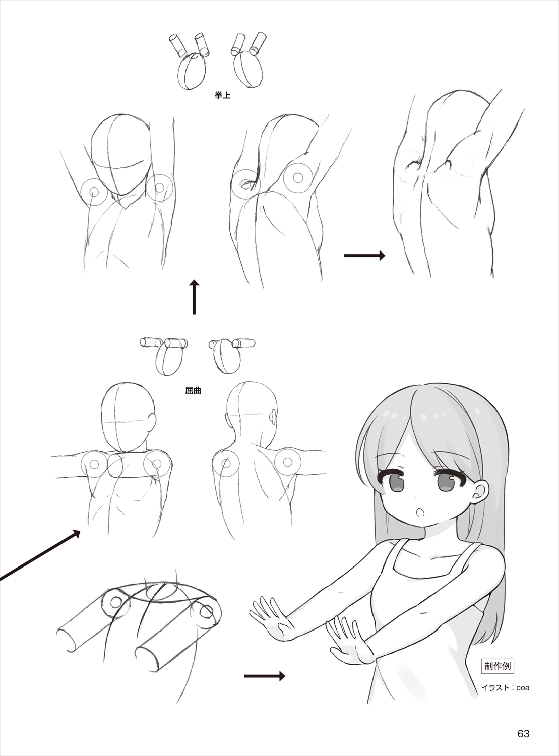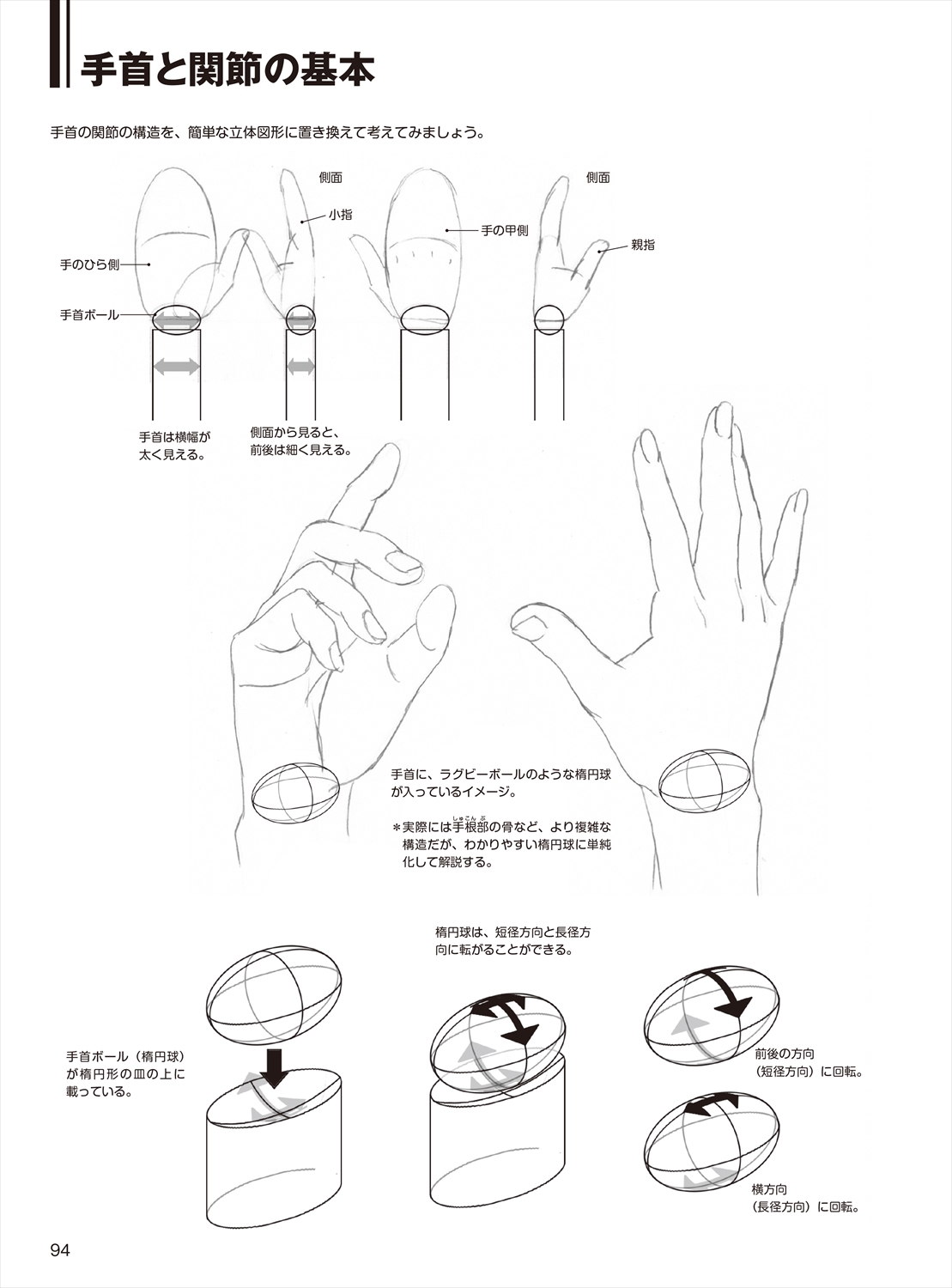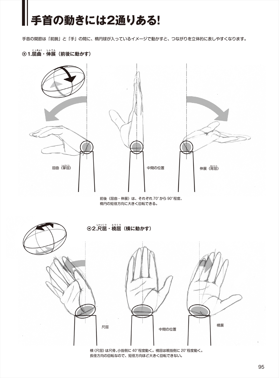 手の表情をとらえるために、手首と指の関節の動きを理解する。腕や手を描く際に、必要になるパース( 奥行きを表す短縮法) を、ていねいに解説。