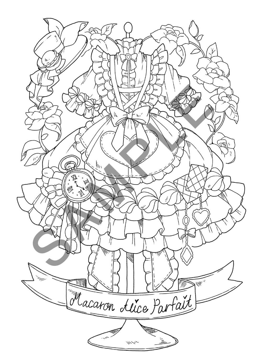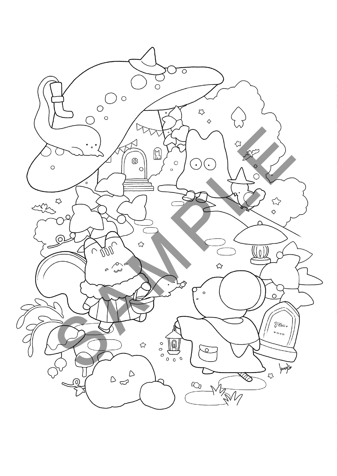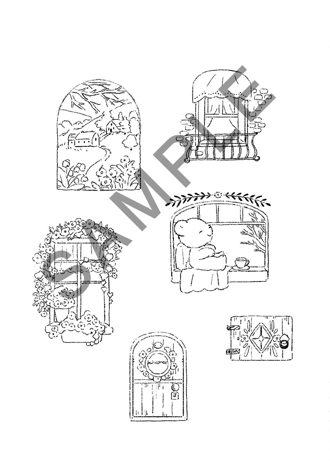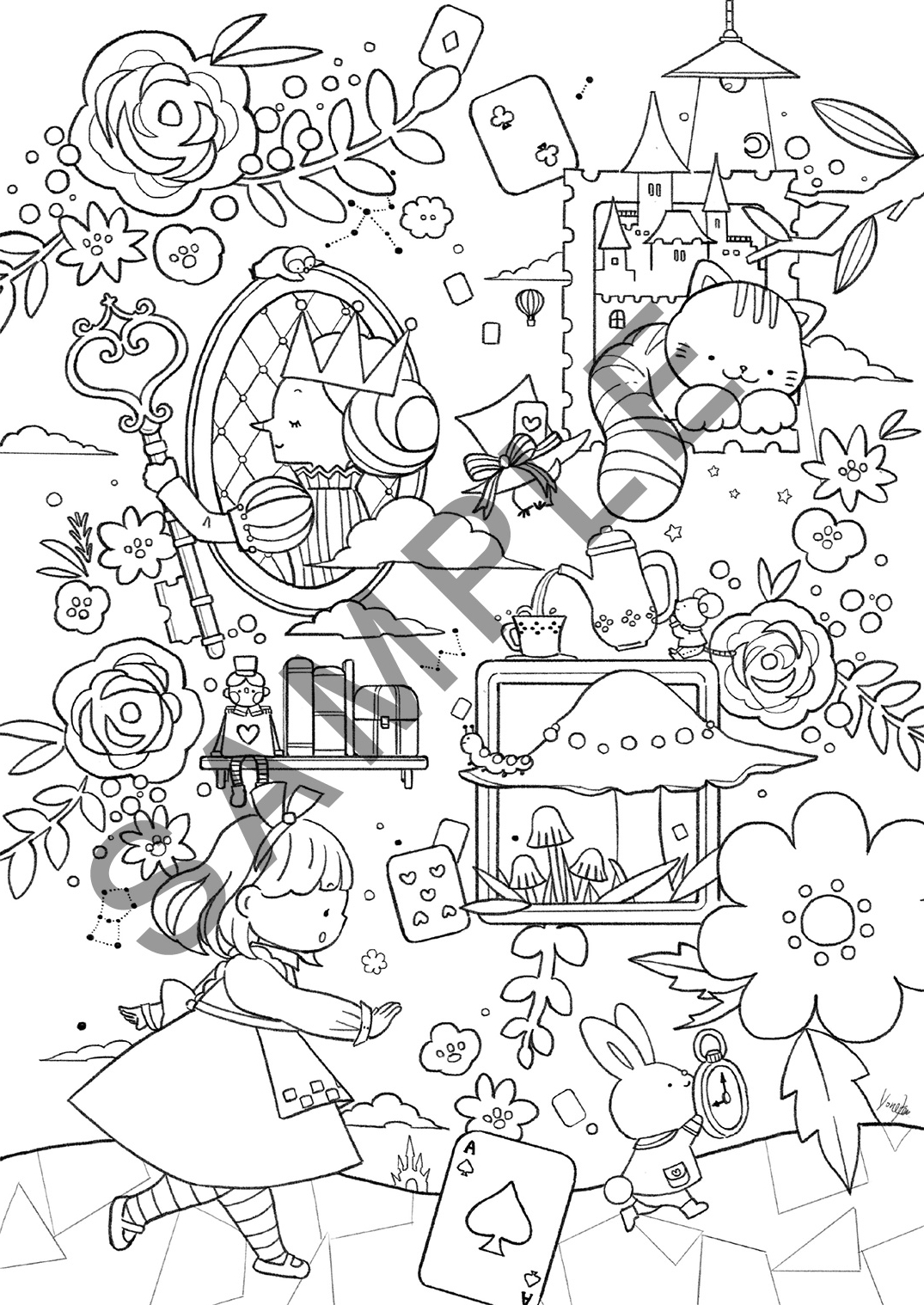 ほんわかとした動物たちや小物、かわいい洋服に身を包んだ女の子、見ているだけで心がほっとするような、ぬくもりあふれる空間を描いた線画を約50点収録しています。