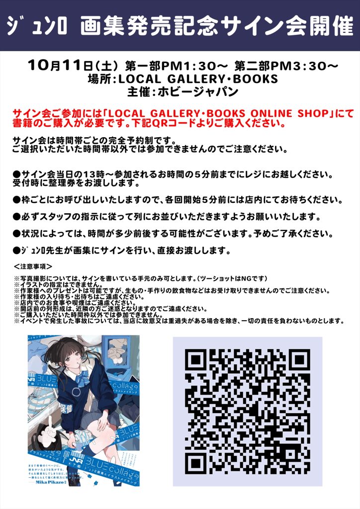 サイン会のご参加にはLOCAL GALLERY・BOOKSオンラインショップより、『ジュンロ画集&イラストメイキング』をご購入ください。