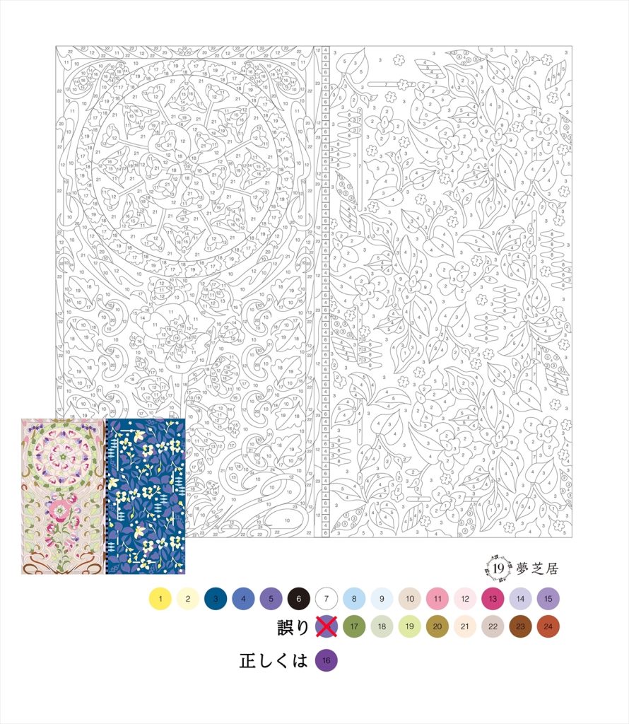 2025年9月19日発売の『癒やしのデザイン・パターンで愉しむ ボタニカルパズルぬりえ』におきまして、P058「夢芝居」の16番色指定の表記に誤りがございました。